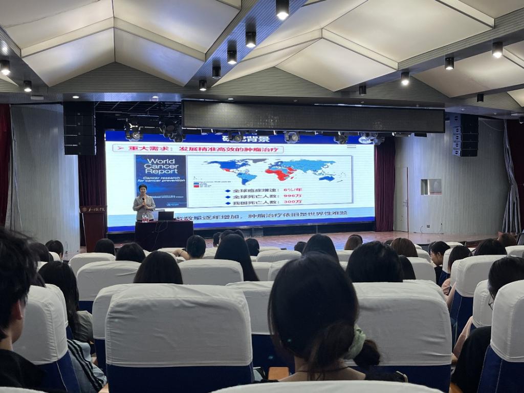 高大威教授首先介紹了癌癥治療領域面臨的挑戰,特別是腫瘤復發和轉移的問題,并闡述了腫瘤間質高壓對藥物傳輸的影響,分享了其團隊在仿生納米淋巴系統設計合成方面的最新研究成果。隨后,高大威教授詳細講解了納米載藥系統和納米生物材料在疾病協同治療中的應用,以及在國際上首次提出的仿生納米淋巴和水動力治療的研究策略。此外,高大威教授還就科研過程中的選題、破題和解題過程與在場師生進行了深入交流,解答了師生們在科研探索中遇到的各種問題。