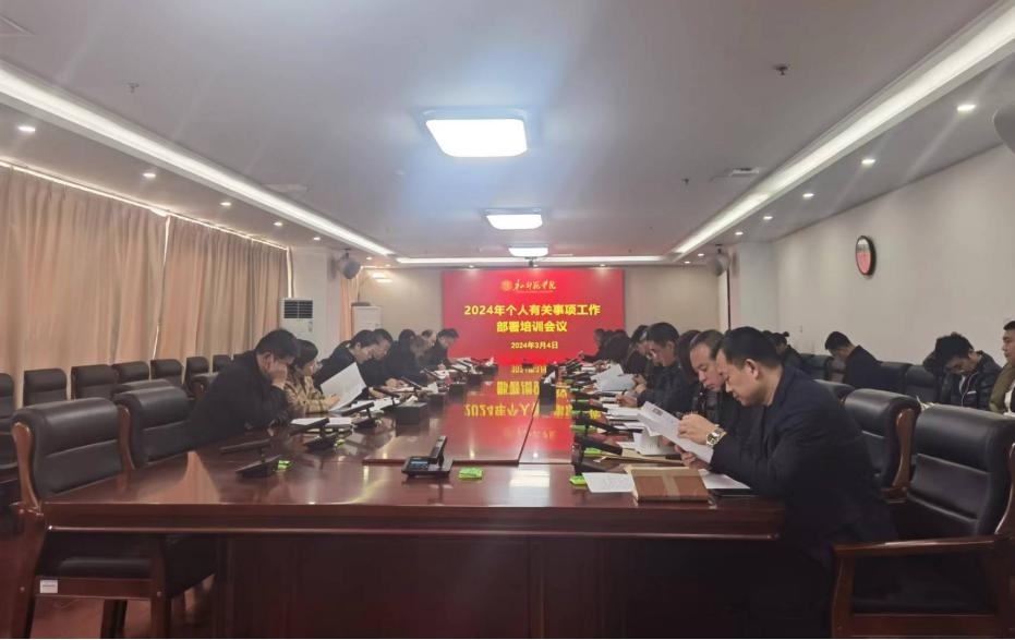 按照《中共河北省委組織部轉(zhuǎn)發(fā)中央組織部<關(guān)于做好2024年領(lǐng)導(dǎo)干部集中報(bào)告?zhèn)€人有關(guān)事項(xiàng)工作的通知>的通知》(冀組明字〔2024〕1號)要求,不斷鞏固拓展學(xué)習(xí)貫徹主題教育成果,深化主題教育成效,高質(zhì)量做好2024年領(lǐng)導(dǎo)干部個人有關(guān)事項(xiàng)報(bào)告工作,貫徹落實(shí)《領(lǐng)導(dǎo)干部報(bào)告?zhèn)€人有關(guān)事項(xiàng)規(guī)定》。3月4日上午,學(xué)校召開領(lǐng)導(dǎo)干部報(bào)告?zhèn)€人有關(guān)事項(xiàng)工作部署培訓(xùn)會議,部署2024年個人有關(guān)事項(xiàng)報(bào)告工作,對納入填報(bào)對象范圍的處級干部進(jìn)行培訓(xùn)。會議由黨委組織部部長郭文利同志主持并提出工作要求。