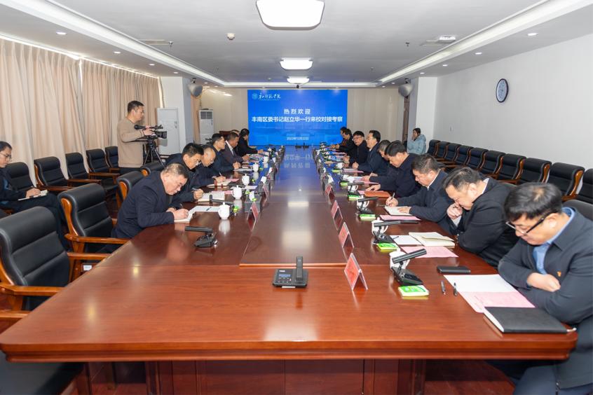 12月22日,豐南區委書記趙立華一行來我校考察調研,并與校黨委書記白春明,黨委副書記、院長孫政,黨委常委、副院長楊濤、李子林、安文忠及相關職能處室負責人進行座談。