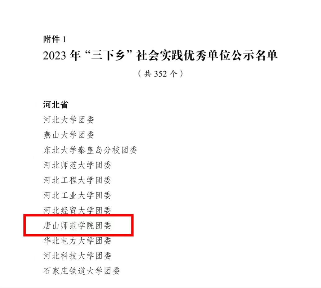 唐山師范學院團委榮獲2023年全國暑期“三下鄉”社會實踐活動優秀單位稱號
