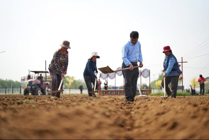 5月3日一大早,玉田縣林頭屯鄉東蘆莊村,一眼望不到邊的農田里,播種機器隆隆作響,十幾位農民大嫂拿著鐵锨拍打著剛剛種植上谷子種的隴地,一片繁忙的播種景象。我校谷子研究所的劉正理研究員帶領團隊,利用五一長假走進田間地頭,邊示范邊指導著大家新技術耐蔭型谷子雜交種的科學種植方法。這是學校產教城融合項目在去年遷西栗園示范基地推廣套種技術喜獲成功后再次大田播種的推廣實踐。