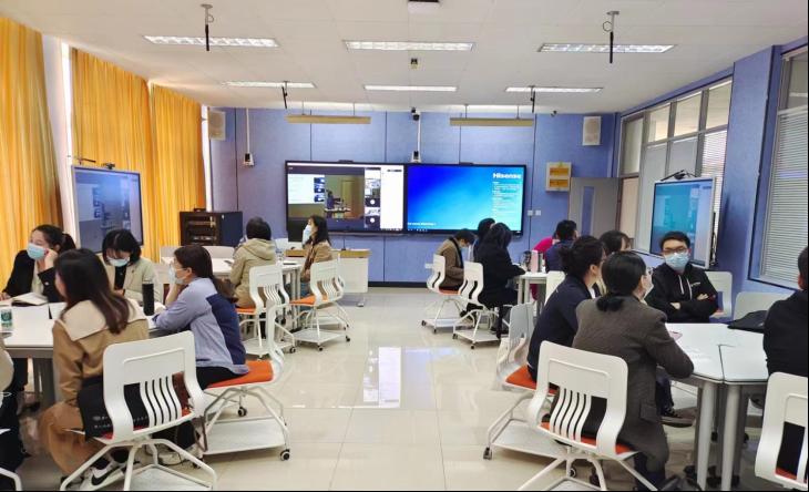 師院隨行人員在現場,師院師生在學院路校區、大學道校區“云端”共上了沈陽師范大學于楊老師《幼兒園班級管理》課程。“云端”共上一堂課,充分利用現代信息技術手段搭建起兩校師生互動、交流、學習的“空中”平臺。隨行人員還現場觀摩了《馬克思主義基本原理》《概率論與數理統計》課程。隨后,師院教學督導與沈陽師范大學校督學結合聽課情況進行了聽評課案例交流。