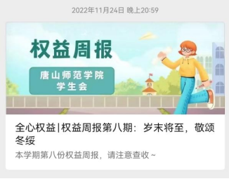 唐山師范學院學生會“1332”交互式服務交流平臺緊扣“全心全意服務同學”這一核心,堅持“線上維權平臺+線下維權窗口+權益委員會”三條途徑,抓實“調研+臺賬+座談”這三種方式,建立“計劃清單+帶動發展”兩項機制。實現學校和同學間溝通服務“零距離”,擴大同學參與民主管理與校園治理的有效途徑,引導學生主動融入學校治理。目前,“1332”平臺已累計輻射18000余名在校生,收集建議3000余條,涉及課堂教學、后勤服務、文化建設等類別,形成調研報告、臺賬1000余份,發布《服務青年若干實事清單》2份,“我為同學做實事”活動被省學聯宣傳報道3次。