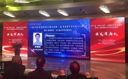 此次活動得到了“學習強國”學習平臺、《人民日報》、新華社、中央廣播電視總臺、《光明日報》、《中國青年報》、中國新聞社、《人民日報海外版》、《中國藝術報》、《中國文化報》、《文藝報》、《中國社會科學報》、中國文藝網、中國網、央視網、中國文藝評論新媒體、《文匯報》、《南方日報》、《江西日報》《河北日報》等近20家媒體的廣泛報道。王老師的此次獲獎不僅擴大了師院聲譽,也在一定程度上提升了唐山市在國內文藝評論領域的影響。