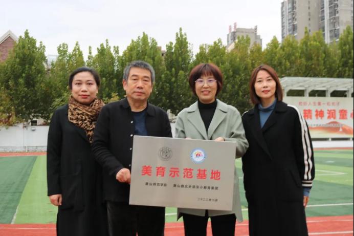 10月27日上午,美術學院與唐山外語實小教育集團協同舉辦“美育示范基地”揭牌儀式活動,美術學院黨總支書記張高志、院長高一帆院長與外國語實驗小學校長陳靜、副校長岳瑞靜共同為基地揭牌。就此,唐山師范學院美育示范基地正式落戶外國語實驗小學教育集團。