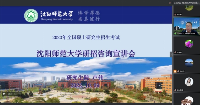 沈陽師范大學研究生院院長盧偉介紹了唐山師范學院與沈陽師范大學在學科建設和人才培養等多方面的合作歷史,詳述了沈陽師范大學研究生招考專業學科的發展歷史、導師團隊、招生專業方向及政策。盧院長從教學、科研及重大研究成果多方面對報考熱門的教育學及相關專業展開詳細介紹,并鼓勵同學們應堅定理想、努力備戰并期待同學們考研上岸。盧院長對師院所開展的研究生招生考試宣講活動表示支持同時贊同師院的“從學生出發”的育人理念。