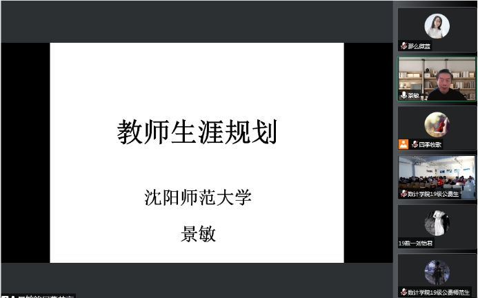 為切實幫助公費師范生做好教師職業(yè)生涯規(guī)劃,10月6日下午,教務(wù)處邀請沈陽師范大學(xué)景敏教授為師院公費師范生作題為“教師生涯規(guī)劃”的專題講座,全體2019級公費師范生和相關(guān)院系的領(lǐng)導(dǎo)參加了線上講座。