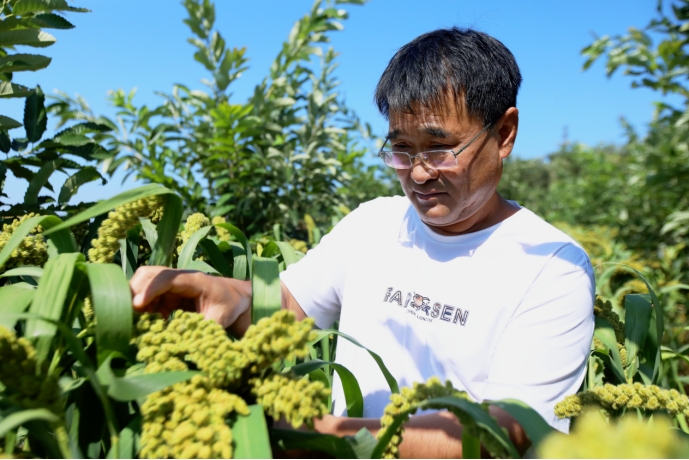 剛剛從田間忙碌完的漢兒莊鎮楊家峪村的老農陳玉儒難掩豐收的喜悅,一邊指著30年樹齡的栗樹林,一邊擦去額頭的汗水,滿臉笑容地說道:“以前這個樹下啥都沒有種,就這么荒著,今年劉教授推廣新品種谷子,我們起初也不信,就每家勉強只種了一小塊。”