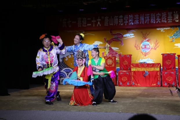 為慶祝建黨101周年,喜迎二十大,推進產(chǎn)教城融合發(fā)展,7月1日晚,音樂系評劇文化研究中心在唐山師范學院灤州評劇實踐基地舉辦了京津冀“非遺”文化展演活動。本次活動由音樂系評劇文化研究中心聯(lián)合河北省戲劇家協(xié)會、灤州市文旅局共同主辦,以“慶七一?喜迎二十大”為主題,集中展示了京津冀地區(qū)的評劇、皮影、大鼓、地秧歌等藝術形式。
