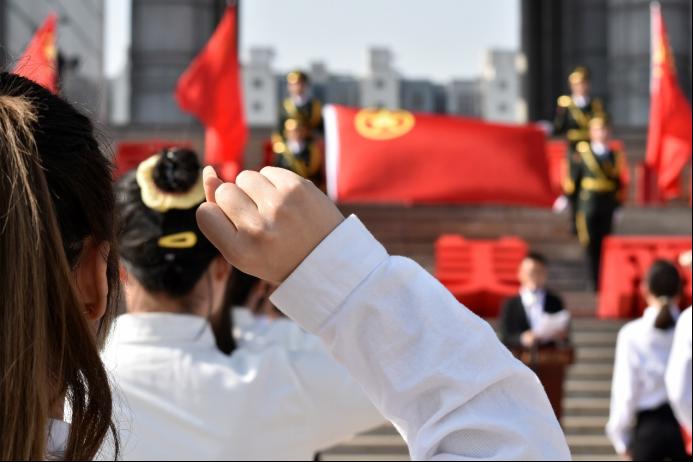 早8時,大學道校區南院舉行升國旗儀式,迎接第103個五四青年節。來自師院各院(系)的本年度新入團團員代表、師院團學骨干代表齊聚主樓前廣場,共同見證五星紅旗冉冉升起的莊嚴時刻。儀式后,2022年度新團員入團儀式接續舉行,團員青年一致表示“愛國是青春最亮麗的底色”“奮斗的青春最美麗”,并決心通過努力學習、努力實踐,銘記歷史,傳承紅色基因,永遠跟黨走,用實際行動兌現莊嚴誓言,用心用情融入師院內涵式高質量發展,無愧于“共青團員”這一光榮稱號,無愧于“師院新青年”這一身份標簽。