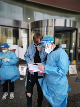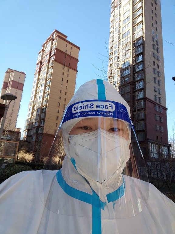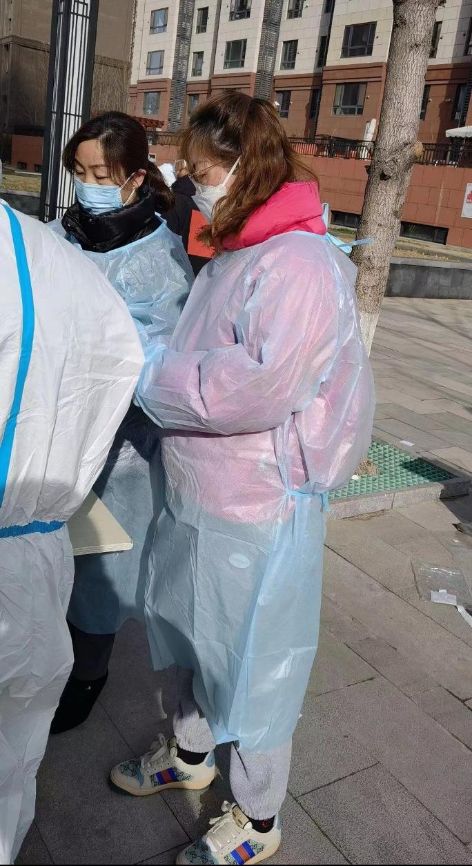 “第一次穿上防護服的我,心里也是有些緊張的,但是看到義無反顧的醫務人員,我變得堅定且充滿力量。雖然防護服有些悶熱,雙層的口罩讓呼吸不那么順暢,雙層的手套勒的手指微微發麻,但當我看到敲開的門里一個個隔著口罩的微笑,感受到居民的積極配合與理解時,內心被溫暖和感動填滿了。”李慧笑著說。