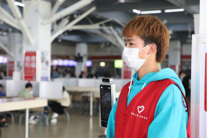 “請(qǐng)您戴好口罩!請(qǐng)有序排隊(duì)取餐,注意間隔……”食堂門口的喇叭聲里不時(shí)地傳來溫柔而又清晰的聲音,他們便是食堂秩序的維護(hù)者,時(shí)刻堅(jiān)守在抗疫的崗位上。