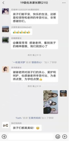 為進一步做實做細新冠疫情防疫期間的學生健康生活指導和關懷引導,化學系老師們在指導學生們以平常心應對非常事、合理安排生活的同時,指導學生拍攝生活、學習、運動的小視頻,以真實的場景向父母、向家人報平安。此舉得到家長們的熱烈歡迎,他們由衷感懷孩子的健康平安,感謝學校和老師。