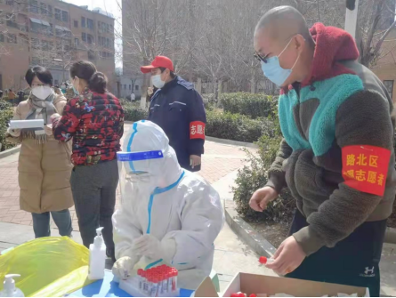 美術學院黨總支發(fā)出“封閉在社區(qū)且無密切接觸史的教職工,第一時間向所在社區(qū)報名報到,助力緩解基層疫情防控人員力量不足問題,在抗擊疫情一線要充分彰顯基層黨組織戰(zhàn)斗堡壘作用和黨員先鋒模范作用”號召后,美術學院兩名黨員教師蔣麗、劉旸、民進黨成員徐亮老師以及民建會員魯玉琴老師,迅速向所在社區(qū)報備,成為第一批社區(qū)志愿者,參與各自社區(qū)的防疫檢測工作,以實際行動踐行初心使命。