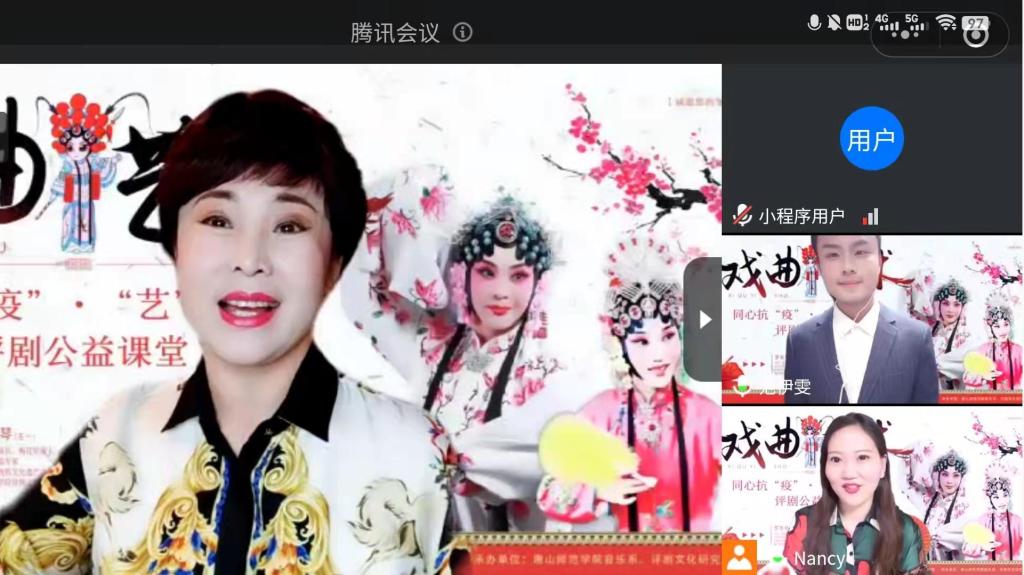 本次活動由河北省戲劇家協會、唐山師范學院主辦,唐山師范學院音樂系、評劇文化研究中心承辦。課堂全面采取線上的形式,來自東北、山東、江蘇、天津等全國多地的評劇愛好者以及在校大學生400余人齊聚空中課堂,國家一級演員、梅花獎得主、國務院特貼專家、國家級非物質文化遺產傳承人、河北省戲劇家協會副主席羅慧琴;河北省戲劇家協會會員、河北省文藝志愿者、非物質文化遺產評劇傳承人楊南老師以現場訪談、在線教學、作品賞析的方式互動交流,傳承評劇藝術,以“藝”抗疫,為唐山抗擊疫情加油助力。同時,也以此在一代評劇大師新鳳霞先生誕辰95周年之際,向新派藝術致敬。河北省文聯副主席、劇協副主席、駐會秘書長賈吉慶對本次活動給予了高度評價。