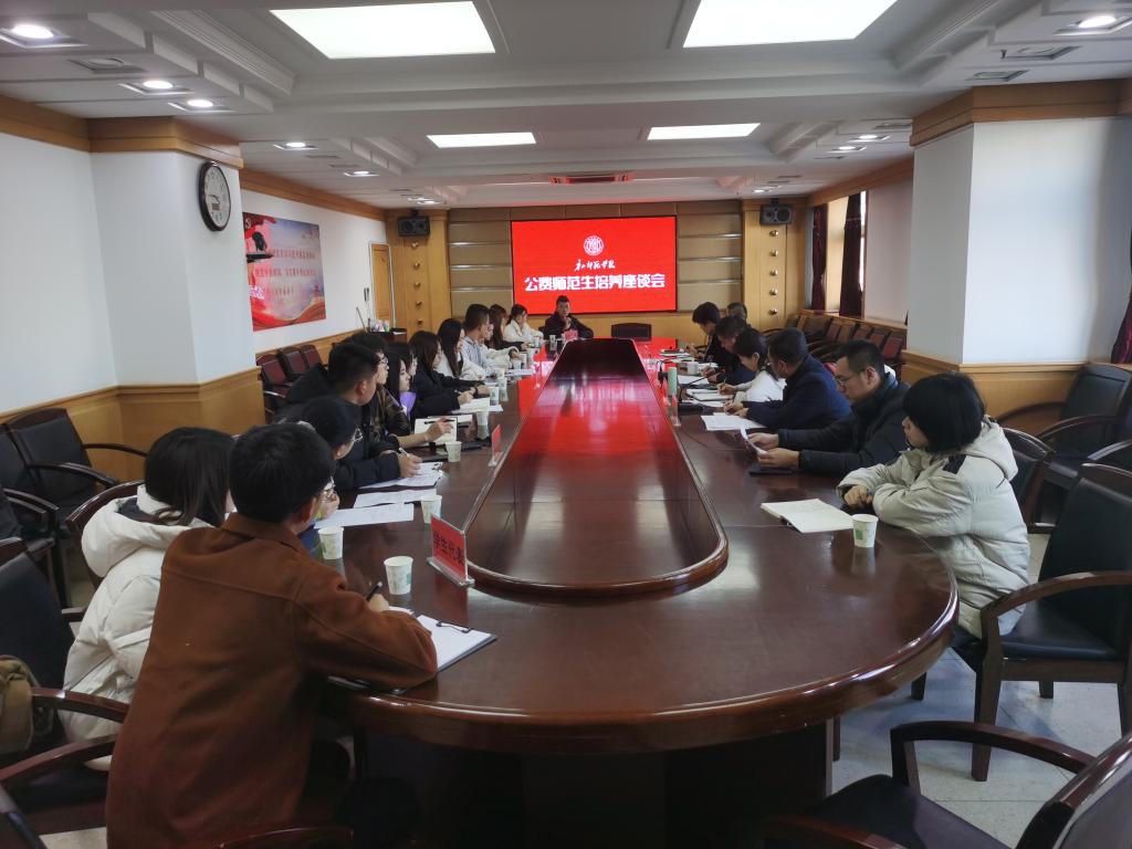 為了解公費師范生的學習情況和生活學習需求,進一步提高公費師范生培養質量,11月30日下午,黨委學工部召開公費師范生專題座談會,師院黨委常委、副院長安文忠出席本次座談會。學生工作部、團委、教務處、招就處以及來自12個院系20名公費師范生代表參加本次座談會。