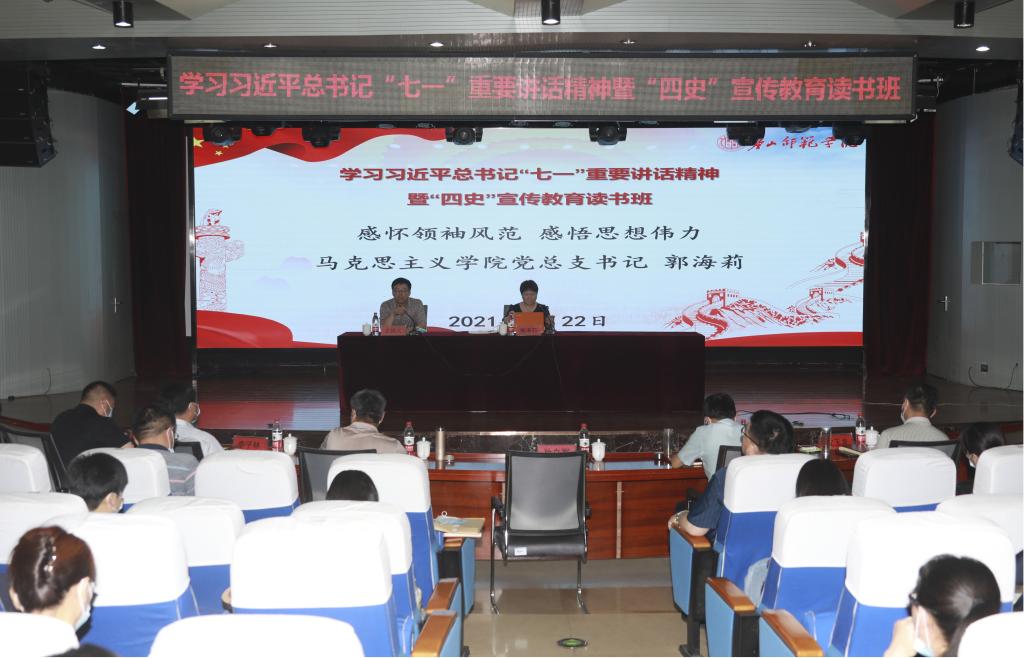 孫立軍副書記在主持時指出,在全黨開展黨史學(xué)習(xí)教育是黨中央部署的一項重要政治任務(wù),組織舉辦專題讀書班是黨史學(xué)習(xí)教育的重要環(huán)節(jié),是提升廣大黨員干部政治理論水平的重要載體。本次讀書班是我校持續(xù)深入開展黨史學(xué)習(xí)教育的重要舉措,全校各級黨組織、全體黨員干部要以本次讀書班為契機,抓好學(xué)習(xí),抓好落實,在學(xué)黨史、講黨史、懂黨史、用黨史方面發(fā)揮示范帶動作用,真正做到在理論學(xué)習(xí)上有收獲,思想政治上受洗禮。