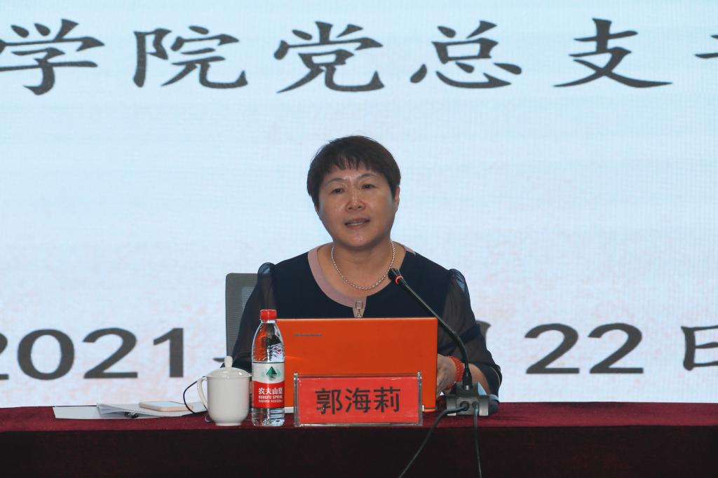 馬克思主義學(xué)院黨總支書記郭海莉以《感懷領(lǐng)袖風(fēng)范 感悟思想偉力》為題作學(xué)習(xí)習(xí)近平總書記“七一”重要講話精神專題報告。她從“深入把握中國共產(chǎn)黨初心和使命昭示的不變主題”“深入把握百年奮斗的主題和偉大成就與全面建成社會主義現(xiàn)代化強國的根本要求”和“深入把握習(xí)近平總書記“七一”重要講話的新思想新觀點新要求”三個方面進(jìn)行分享與闡述。
