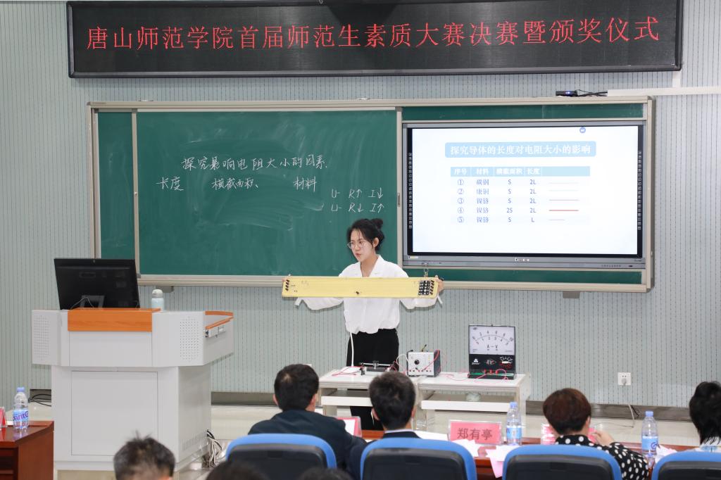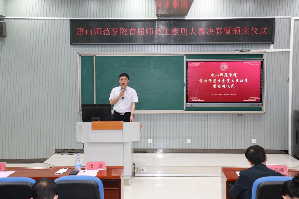 副校長楊濤指出,我校作為一所師范院校,歷來重視師范生的綜合素質(zhì)培養(yǎng),為師范生的發(fā)展成長搭建了很多平臺,與唐山市教育局認真組織師范生近一學(xué)期的教育實習(xí),籌建1800平米的教師職業(yè)技能訓(xùn)練中心,積極申報師范類相關(guān)專業(yè)的二級認證工作,全方位地提高學(xué)生的專業(yè)素質(zhì)能力。他強調(diào),本次比賽是對我校師范生素質(zhì)和技能的一次檢閱,也是展示未來教師風(fēng)采的一個平臺,各院系一定要重視師范生的師范技能培養(yǎng),在工作中要以習(xí)近平總書記提出的“四有”好老師標準培養(yǎng)師范生,以強化學(xué)生的思想政治素質(zhì)和師德師風(fēng)建設(shè)為首要任務(wù),讓同學(xué)們堅定理想信念,恪守師德準則,涵養(yǎng)教師情懷,全面提高我校師范生教師就業(yè)能力標準。