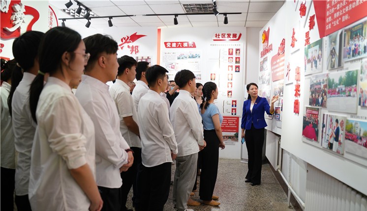 在祥富里社區黨總支書記陳林靜的陪同解說下,師生代表先后參觀了社區的政務服務大廳、組織生活館等,充分聽取了陳林靜關于社區的情況介紹。用黨的成功經驗啟迪人,激勵青年學生知黨愛黨,進一步引導廣大團員青年聽黨話、跟黨走。