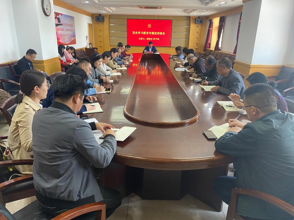為深入學習貫徹習近平新時代中國特色社會主義思想,學習領會黨史學習教育動員大會上的重要講話精神,按照上級和學校的統一部署,4月19日下午,副校長李子林在行政樓五層會議室做黨史學習教育專題宣講報告。辦公室、招就處、安全處、繼續教育學院、國際交流中心的教職工參加了學習教育。