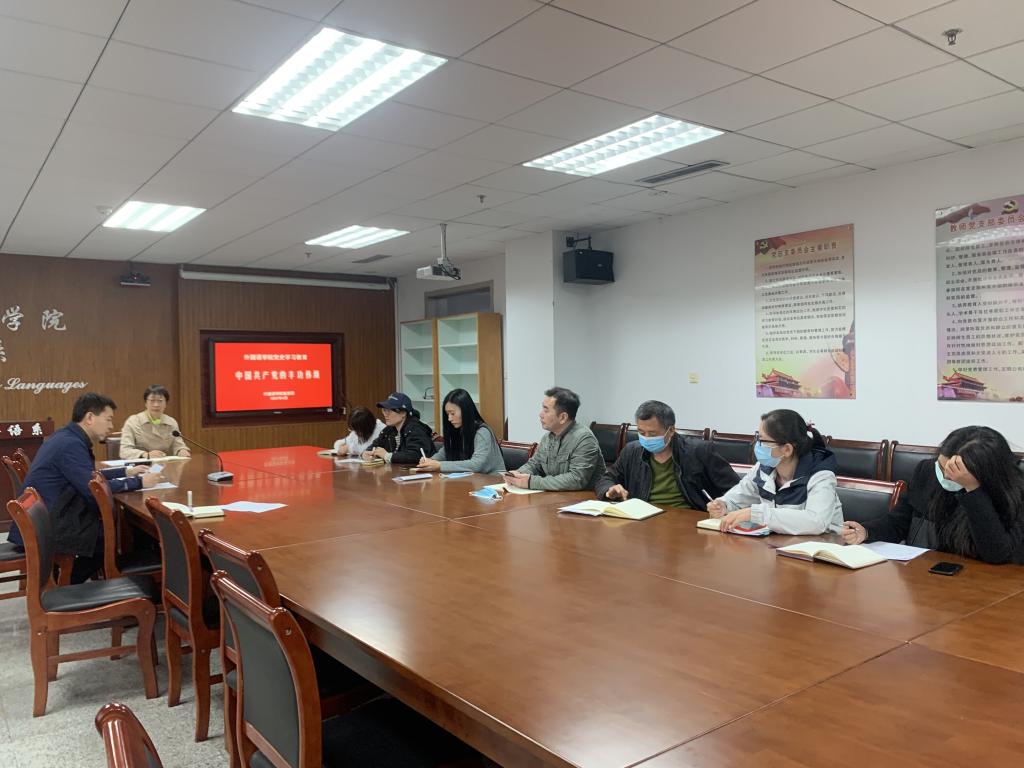 為慶祝中國共產黨成立100周年,深入開展黨史學習教育,用黨的實踐創造和歷史經驗啟迪智慧、磨煉品格,外國語學院于2021年4月15日在北院文科樓910黨員之家舉辦《中國共產黨的豐功偉績》黨史專題講座。主講人為外國語學院黨總支鄭向群書記,全體輔導員和班主任到場參加。講座由黨總支副書記谷世海主持。