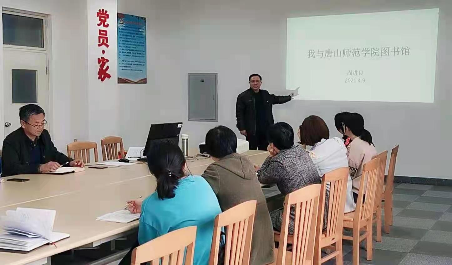 為推動(dòng)圖書(shū)館興起黨史學(xué)習(xí)的熱潮,根據(jù)上級(jí)文件精神和學(xué)校黨史學(xué)習(xí)工作部署,圖書(shū)館組建黨史學(xué)習(xí)教育宣講團(tuán),對(duì)圖書(shū)館全體教師做好黨史學(xué)習(xí)教育集中宣講工作。2021年4月9日下午,由圖書(shū)館副館長(zhǎng)周進(jìn)良同志作了題為《我與唐山師范學(xué)院圖書(shū)館》黨史學(xué)習(xí)教育專(zhuān)題講座,圖書(shū)館全體教師參加。講座由圖書(shū)館黨總支書(shū)記徐東蕓主持。