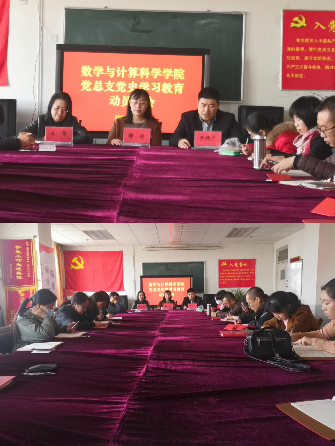 按照中央、省、市和學校統一部署,3月23日下午,數學與計算科學學院黨總支在主樓11樓會議室召開了黨史學習教育動員大會,黨總支書記檀艷、院長李師廣、副書記王芳出席會議,全體教師黨員參加會議。會議由院長李師廣主持。
