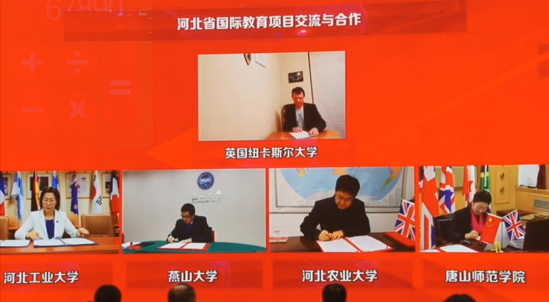 此外,我校與河北工業大學、河北農業大學、燕山大學一起與英國紐卡斯爾大學舉行云簽約儀式,建立的“河北國際教育創新中心”也在項目發布會上發布。
