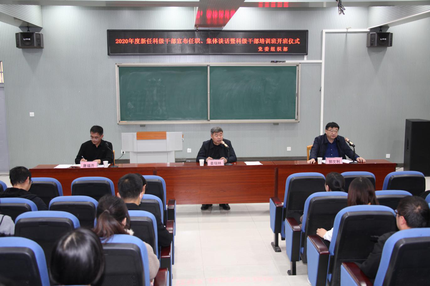 隨后,姜瑞林副書記對與會人員進行集體談話并提出四點要求。一是旗幟鮮明講政治,爭做“信念堅定”好干部。要堅定理想信念、做到對黨忠誠,強化政治理論武裝,不斷加強政治素養,做到對黨絕對忠誠,做政治上的“明白人”。二是持續深入抓學習,爭做“嚴謹細致”好干部。要持續深入學習習近平新時代中國特色社會主義思想和黨的十九大、十九屆歷次全會精神和《習近平談治國理政》第三卷重要內容,在學懂、弄通、做實上持續用力、狠下功夫,努力成為本職工作的行家里手。三是勤勉高效履職,爭做“務實擔當”好干部。要徹底解決在工作上不思進取、辦事拖拉、效率不高、落實不力的問題,做到遇到矛盾不繞行、解決問題不推脫,在破解矛盾和問題中錘煉作風、提升能力。四是嚴格修身自律,爭做“清正廉潔”好干部。要堅持從嚴要求,增強廉潔意識,帶頭自覺遵守廉潔自律各項規定,強化自我教育、自我管理、自我約束,主動置身于黨組織、黨員和群眾的監督之下,把握防線、嚴守底線。他強調,科級崗位是貫徹落實上級和學校黨委決策部署的最后一公里,要充分發揮科級干部的主力軍作用,希望大家加倍珍惜黨組織的厚愛和重托,勇于擔當負責,在新崗位上以實際行動踐行新時代好干部標準。集體談話結束后,姜書記圍繞“端正思想,提高認識”、“珍惜機會,學以致用”、“嚴格紀律,確保效果”三方面對科級干部培訓班做了動員講話。