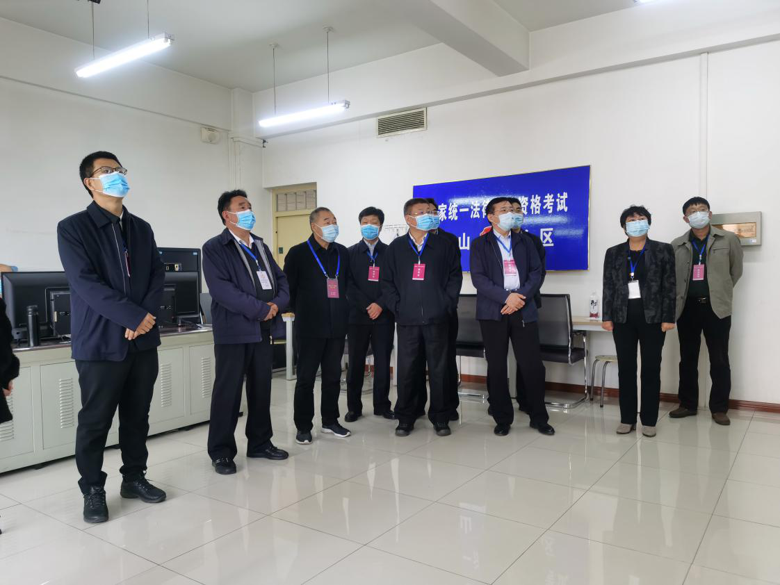 考試期間,省司法廳副廳長趙樹堂,市委常委、政法委書記喬朝英,市人大常委會副主任張國棟,副市長、市公安局長閆澤利,市政協副主席胡萬寧在考點進行巡視。市司法局黨組書記張占忠、局長侯西嶺、杜彩芹校長、楊濤副校長陪同巡視。巡考組一行先后來到計算機監控室和北院考點,分別就考試的組織領導、疫情防控工作開展、疫情防控應急處置、防疫設施及物資后勤保障等進行了詳細督導。巡考組充分肯定了我校的考務工作,并提出了更高、更細、更嚴的要求。