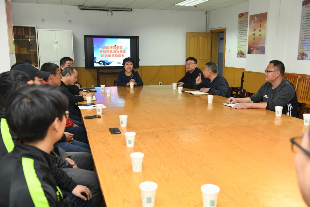 10月20日下午,我校河北省冰雪運動會參賽出征動員會在體育系會議室舉行。校長杜彩芹、副校長楊濤、安文忠出席會議,體育系黨總支書記劉云偉、系主任蔡建豐、專業技術教研室主任遲桂軍、輪滑教練王磊、譚夢超、滑冰教練郭杰及全體參賽運動員參會。蔡建豐主任主持會議。