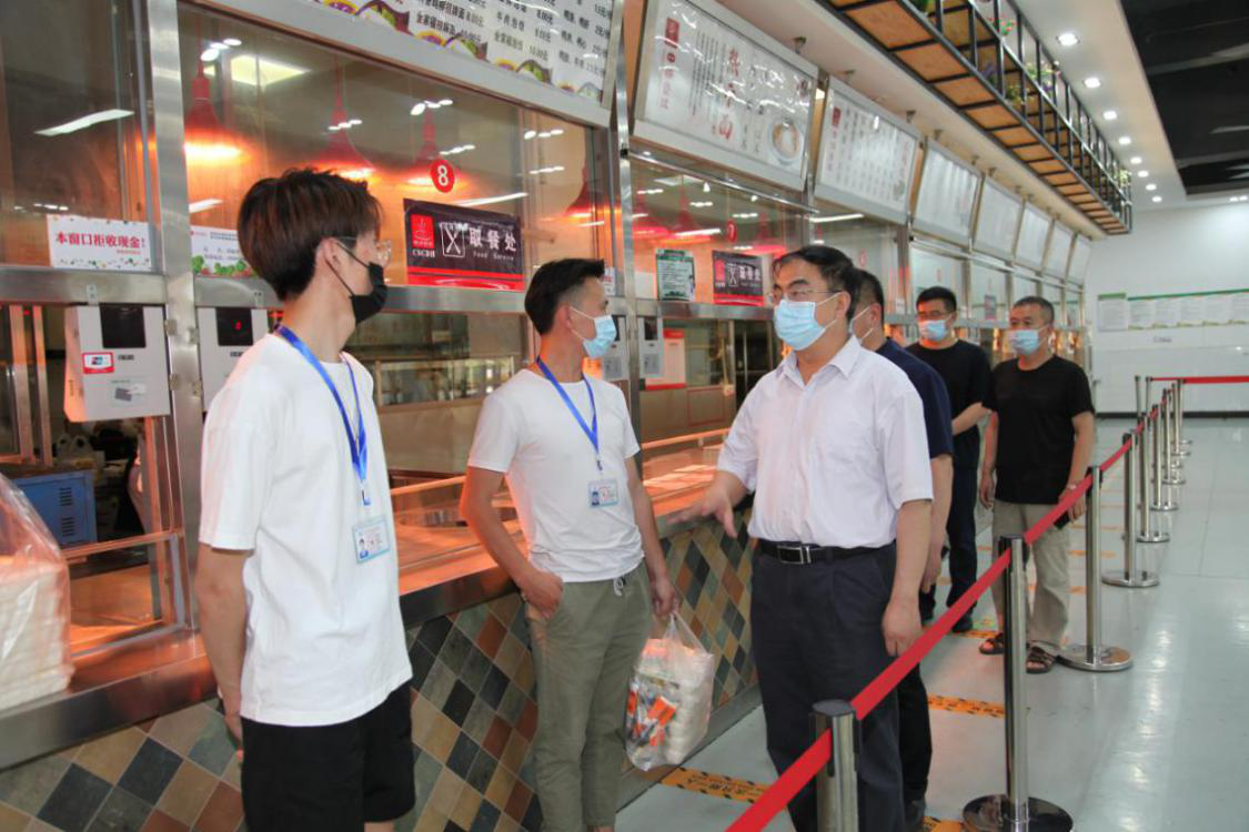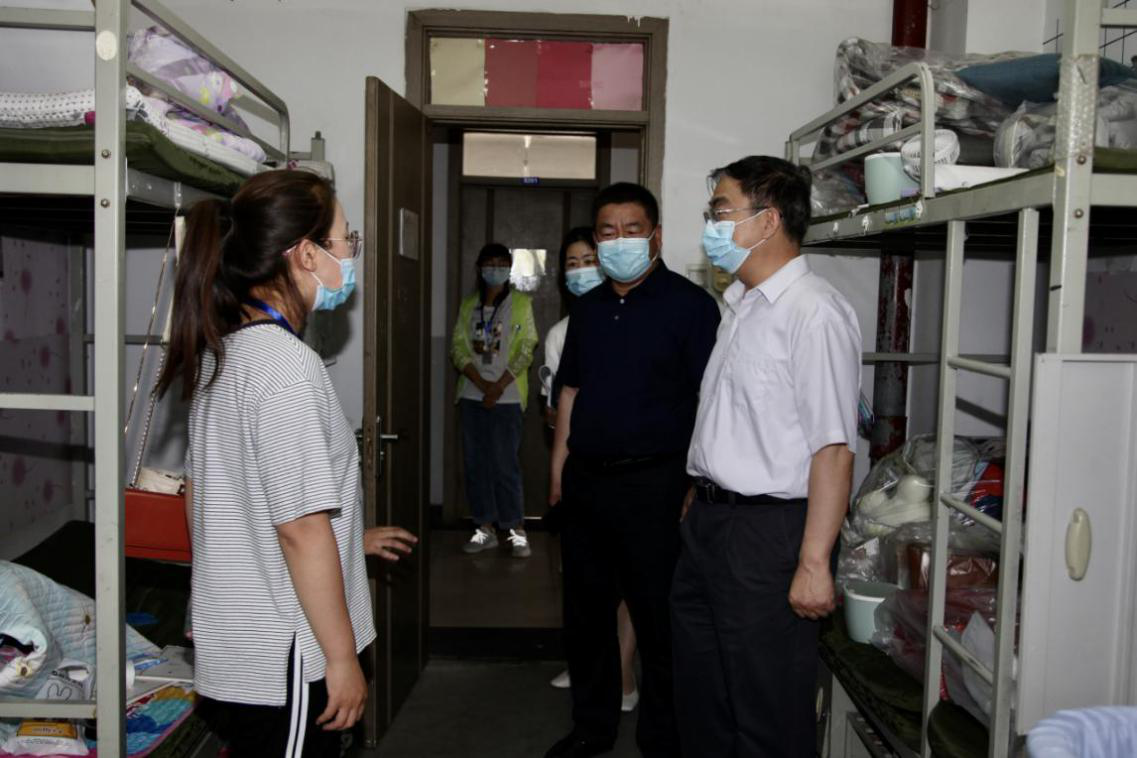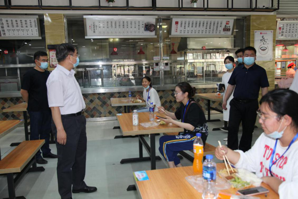 王英書記一行重點對食堂、宿舍樓等事關返校重點區域進行了指導檢查,對返校畢業生及工作人員進行慰問,并對相關工作進行了安排部署。