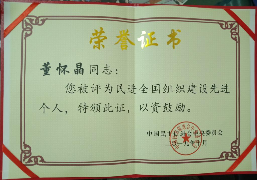 為深入總結民進黨組織建設的成績和經驗,發揮先進典型的示范和激勵作用,推進全會組織建設取得更大進步,民進中央對主題年工作中涌現出的一批取得突出成績、做出突出貢獻的先進黨組織和個人進行表彰。我校美術系學生工作辦公室主任,民進唐山市委委員、民進唐山師范學院二支部主任、唐山市政協委員董懷晶同志榮獲“民進全國組織建設先進個人”稱號。