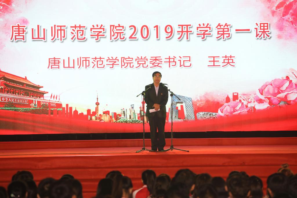 晚會在一曲《我們都是追夢人》中拉開序幕,校黨委書記王英為同學們做了“開學第一課”的講話。他首先對2019級新同學的到來表示熱烈的歡迎。王英書記說,學校秉承“抗震精神辦學、大釗精神育人”的辦學理念,用“兩種精神”指引學校的發展和學生的成長。他特別指出李大釗同志是我們學習的榜樣,也希望新一代青年要傳承大釗精神,實現中華民族偉大復興、實現中國夢而努力。他向廣大新同學提出了三點希望:一是要做到堅定理想信念,補足精神之“鈣”;二要做到與母校榮辱與共,熱愛學習之“家”;三是要竭力勇擔重任,無愧青春之“我”。