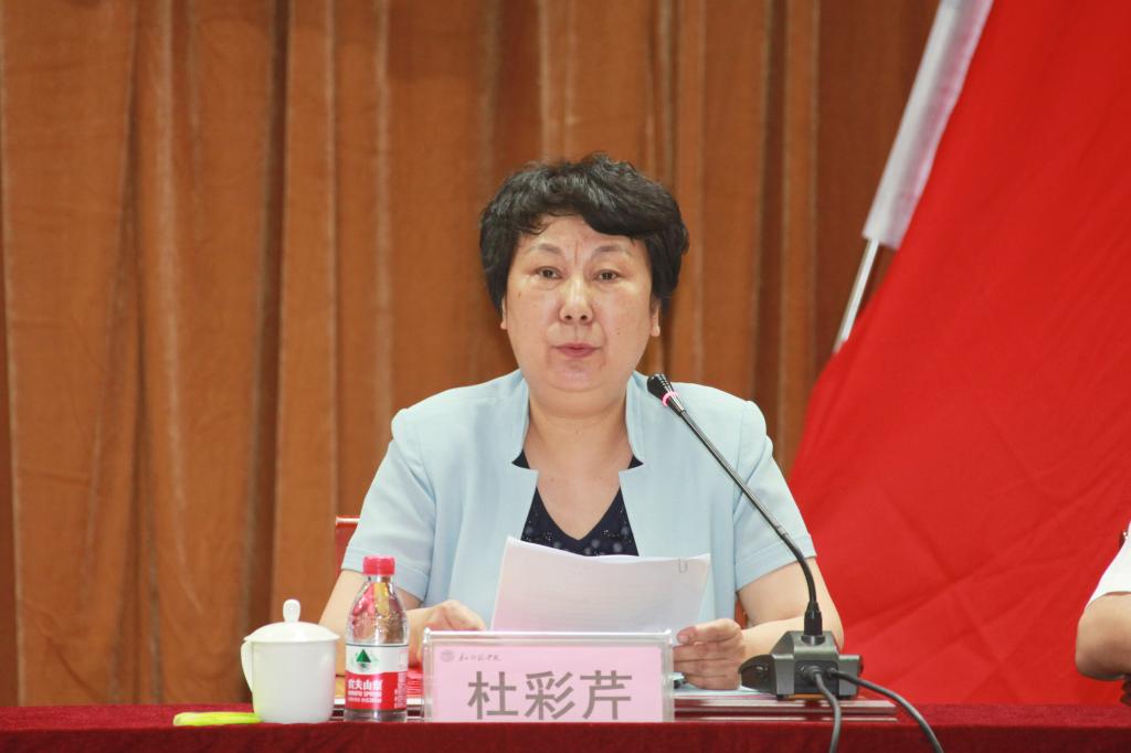 杜彩芹院長(zhǎng)在主持會(huì)議時(shí),要求各基層黨組織會(huì)后認(rèn)真組織學(xué)習(xí)領(lǐng)會(huì)會(huì)議精神,并以即將開展的“不忘初心、牢記使命”主題教育活動(dòng)為契機(jī),不斷增強(qiáng)“四個(gè)意識(shí)”、堅(jiān)定“四個(gè)自信”,做到“兩個(gè)維護(hù)”,筑牢信仰之基,補(bǔ)足精神之鈣,把穩(wěn)思想之舵,同時(shí)按照中央和省委會(huì)議精神,正風(fēng)肅紀(jì),整治“四風(fēng)”,嚴(yán)格落實(shí)八項(xiàng)規(guī)定,以良好的政治生態(tài),推動(dòng)學(xué)校高質(zhì)量發(fā)展。杜院長(zhǎng)希望受到表彰的集體和個(gè)人持續(xù)發(fā)揮戰(zhàn)斗堡壘作用和先鋒模范作用,以扎實(shí)的工作成效向中華人民共和國(guó)成立70周年獻(xiàn)禮。并就做好期末和暑期各項(xiàng)工作提出明確要求。