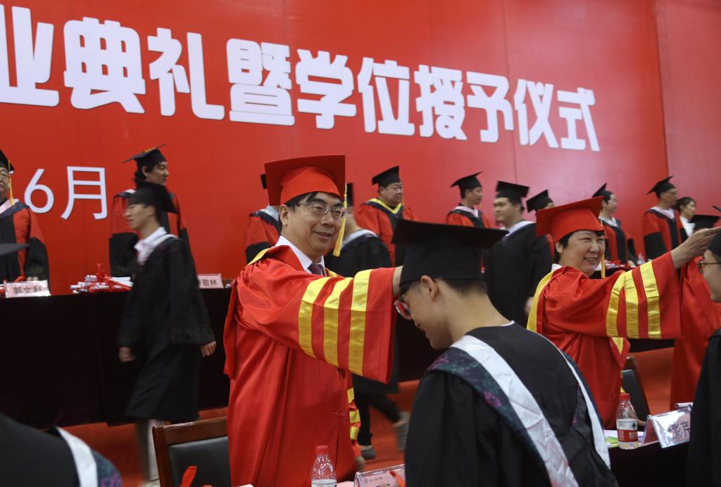 畢業典禮結束后,舉行了本科生學士學位授予儀式。校領導與主禮教授們為每位本科生正冠撥蘇、授予學位。