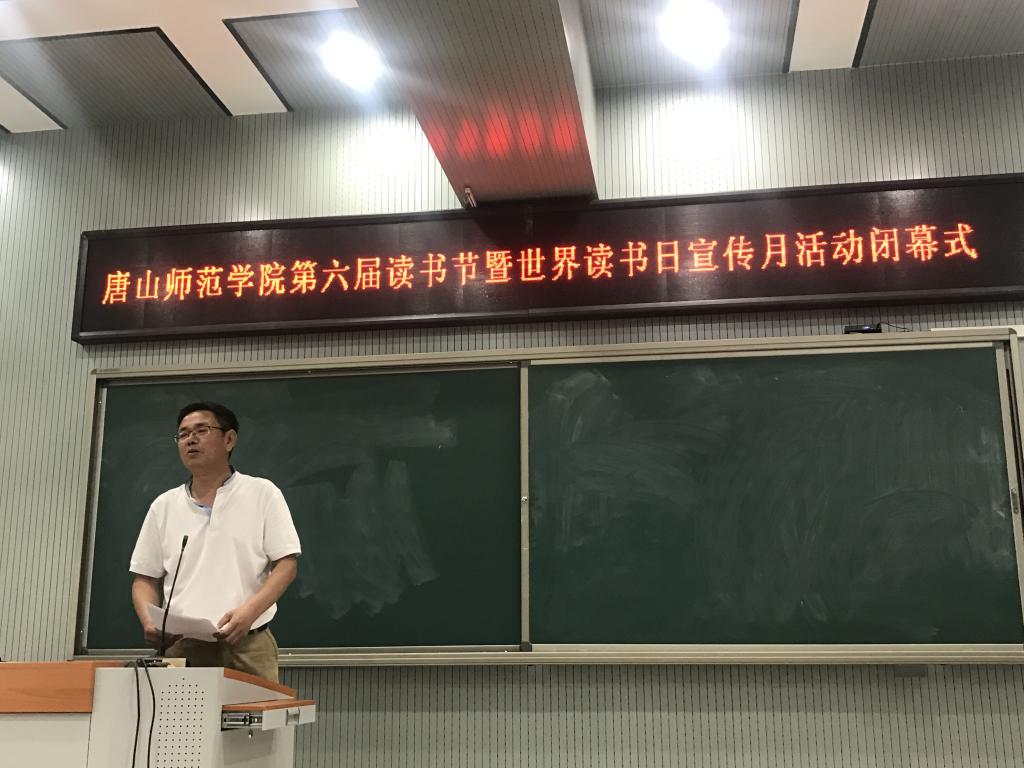 圖書館館長李增元介紹了本屆讀書節“書語心空,墨香永存”征文大賽、“我是唐師朗讀人”朗讀大賽、“誦讀經典,演繹名著”名著演繹大賽等各項活動的開展情況,并指出讀書節的閉幕并不是讀書活動的結束,而是讀書新起點的開始,讀書節所培養的人文精神、科學精神、創新精神,始終在傳承和發揚。社科部黨總支書記王學增宣讀了本屆讀書節系列活動的獲獎名單,并向獲獎同學表示祝賀。獲獎代表王欣媛同學發言,分享了她在讀書節活動中的收獲與感受。