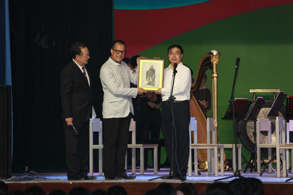 在一段精彩的開場表演后,孫立軍副院長代表學校致歡迎辭,他首先向藝術家們表示熱烈歡迎,并希望同學們秉承“沉下心思,放開眼界”的學風,認真欣賞歌劇藝術,在高雅文化的熏陶下,不斷提升審美修養,提高精神境界,促進全面發展。隨后,王英書記向中央歌劇院藝術家代表贈送禮物。