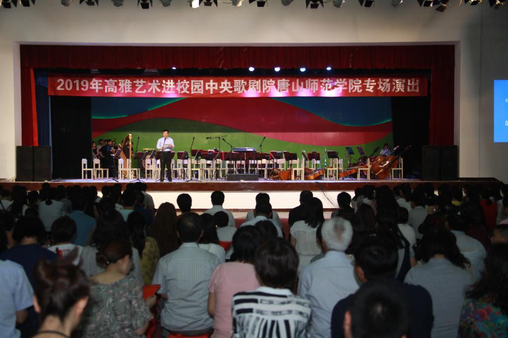 5月24日晚,由教育部、文化部、財政部主辦,河北省教育廳協辦,我校承辦的“2019高雅藝術進校園——中央歌劇院走進唐山師范學院”活動在我校學院路校區拉開帷幕,我校黨委書記王英、副書記姜瑞林、副院長孫立軍出席本次活動,全校近千余名師生參加。在兩個小時的演出中,中央歌劇院的藝術家們用精彩的表演,贏得了現場師生經久不息的熱烈掌聲。