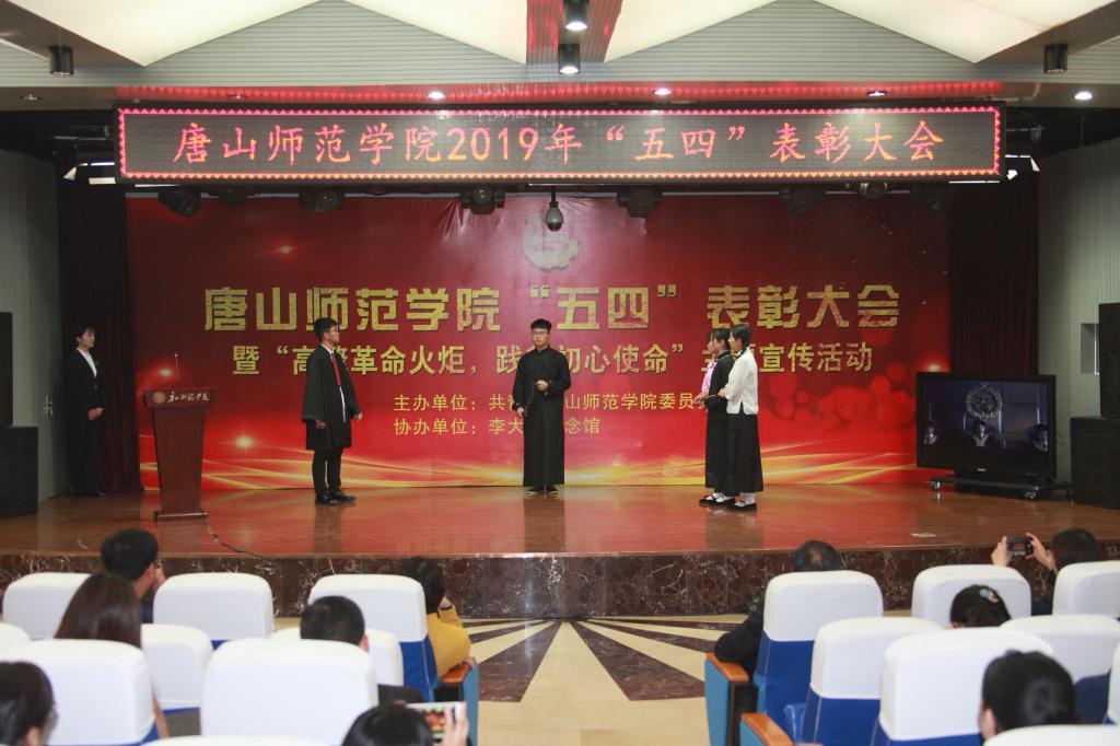 為紀念五四運動100周年、李大釗同志誕辰130周年,鼓舞青年學生奮發有為、頑強拼搏,4月29日下午,我校在會議中心舉行2019年“五四”表彰大會暨“高擎革命火炬,踐行初心使命”主題宣傳活動。團市委副書記王基揚、大釗紀念館副館長于海英和我校黨委副書記趙劍鋒、副院長客紹英、黨委常委邊宏廣、黨總支書記安靜、學工部部長孟祥昕出席大會。各系(院)黨總支書記、副書記、團總支書記及學生代表共計370余人參加了本次活動。活動由校團委書記劉繼祥主持。