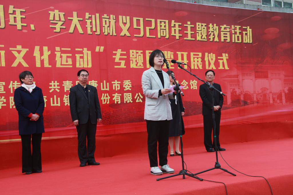 4月28日上午,唐山市紀念五四運動100周年、李大釗就義92周年主題教育活動暨“李大釗與五四新文化運動”專題展覽在我校主樓前廣場成功舉辦。團市委書記李虹、市委宣傳部宣傳處處長李曉蘭、市僑聯(lián)副主席朱秋華、唐山銀行副行長安建平、大釗紀念館副館長于海英和校黨委書記王英、副書記趙劍鋒出席開展儀式,同時參加本次活動的還有我校師生代表共計1000余人。開展儀式由團委書記劉繼祥主持。
