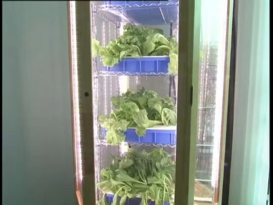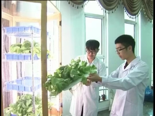 在唐山師范學院“大學生眾創空間”我們見到了這套可從水分、光照、溫度等方面進行智能調控的植物工廠“菜多多”,它主要采用深液流水培的方式,配合六面體玻璃的外罩及側給式補光,運用最新的PLC智控面板,可以用手機APP遠程監控蔬菜生長狀況,并且可以在手機上一鍵解決溫、光、水、肥、氣,熱等問題。