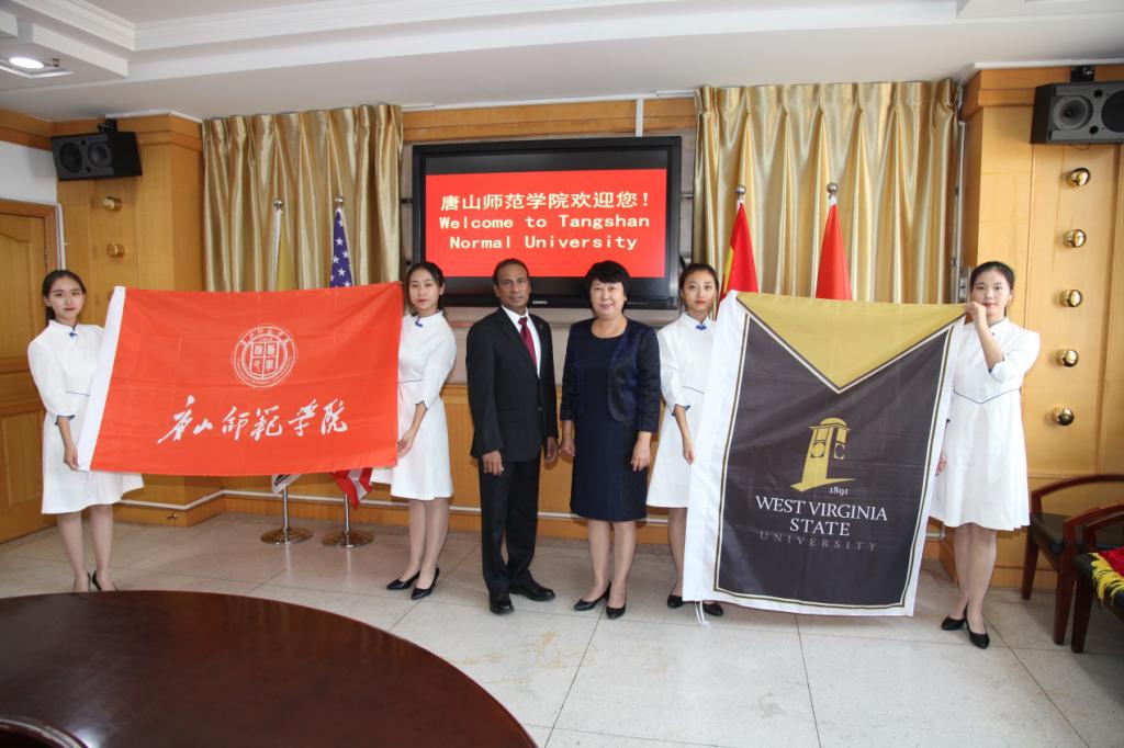 2018年9月26日上午,西弗吉尼亞州立大學學術副校長兼教務長Kumara Jayasuriya博士與國際事務辦公室主任汪瀾教授來我校進行訪學交流。校長杜彩芹、副校長客紹英參加會面、交流、座談等活動,人事處、財務處、教務處、科研處、國際交流中心、學報編輯部、中文系、教育學院等相關處室和院系參加座談活動。
