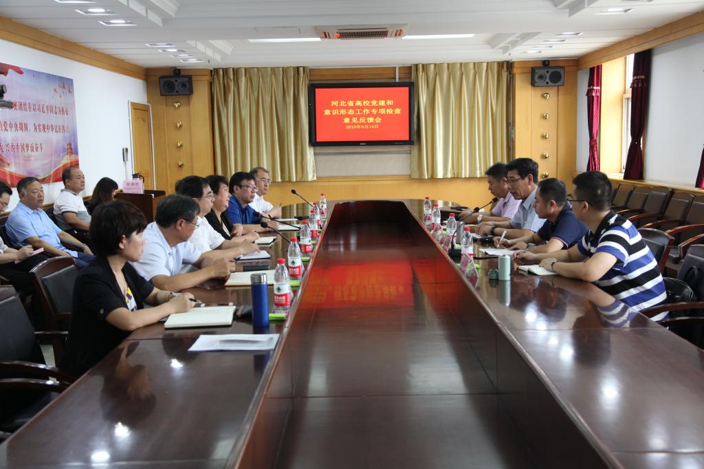 9月13日,全省高校黨建和意識形態工作專項檢查組組長楊亞忠,成員祖磊、劉全明、劉鋼一行來到我校,對黨建工作落實情況、意識形態相關工作情況、安全穩定工作情況、開學前相關工作、眾創空間建設等方面進行檢查督導。黨委書記王英、院長杜彩芹及其他領導班子成員出席匯報會,相關處室主要負責同志參加會議。