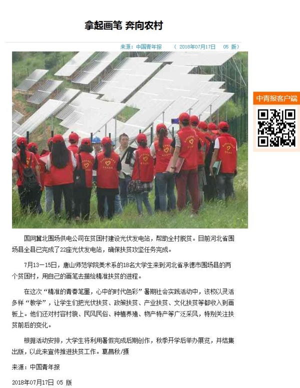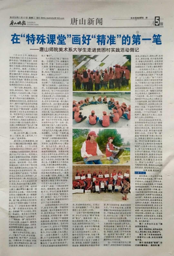 2018年7月13日—14日,美術系社會實踐活動小分隊18名大學生,在系領導張高志主任、張萬山副書記,指導教師董懷晶、劉佳、李愛民、梁國強的帶領下,來到我校兩個精準扶貧村——承德市圍場縣腰站鎮上三合義村和六合店村進行暑期社會實踐活動。