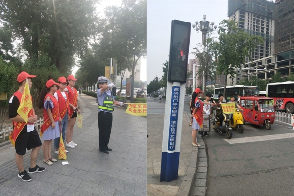 每天早上七點,志愿者集合完畢共同前往建設路與長寧道口協助交警在人行路上指揮交通,服務分為兩個時間段,上午七點半到八點半,下午五點半到六點半。每次四名志愿者頭戴紅帽、身穿紅馬甲、手執黃色引導旗,在路口協助交警進行交通疏導,引導市民文明出行。志愿者們冒著酷暑,在斑馬線前隨時向有困難的群眾伸出援手,糾正各種不文明出行習慣,贏得了廣大市民的贊譽。