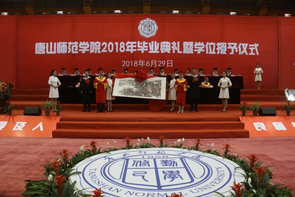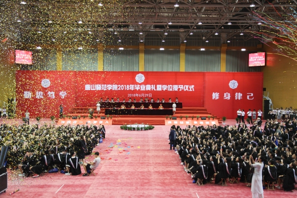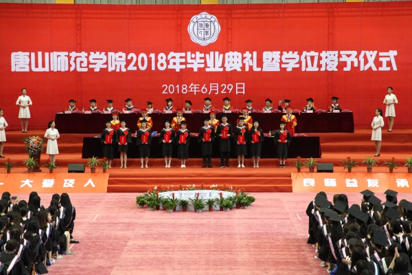 畢業典禮開始前,由12名畢業生奉獻了歌曲聯唱。在一首唐山師院版《那時再唱給你聽》的大合唱中,畢業典禮隆重開始。