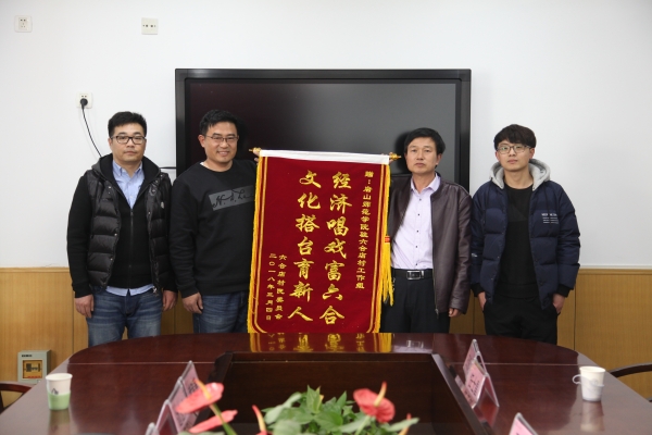 司建春村主任再次表達了感激之情,并代表全體村民送上兩面錦旗。司建春說,寫給學校的錦旗,是他思慮了許久寫出來的:“情暖六合為百姓解困,精準扶貧派良才駐村”。兩年來,學校派精兵強將駐村工作,為村里的百姓解決脫貧致富的大難題。第二面錦旗是送給駐村工作隊的——“文化搭臺育新人、經濟唱戲富六合”。兩年來,駐村工作隊與村兩委班子,共同探索六合店村發展的特色之路——“文化搭臺、經濟唱戲”。六合店村將按照這個規劃,繼續前行,爭取早日脫貧,并努力成為文化名村、經濟強村。兩面紅紅的錦旗表達了村民們的感激之情,展現了我校扶貧工作的思路與成效。
