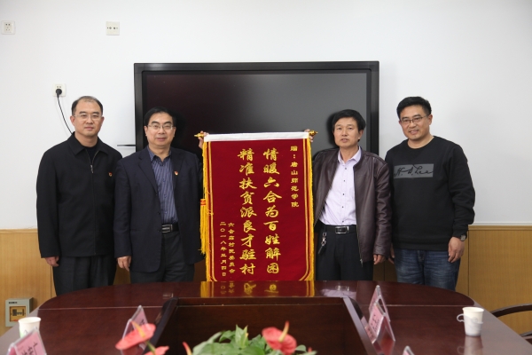2018年3月8日,我校定點幫扶的承德市圍場滿族蒙古族自治縣腰站鎮六合店村的村委會主任司建春等8位村民代表,不遠千里,風塵仆仆地來到唐山,代表全體村民為我校及我校駐六合店村工作組贈送錦旗。